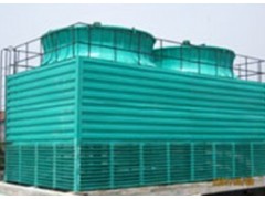 威海文登荣昌玻璃钢厂生产的横流式玻璃钢冷却塔采用两侧进风,靠顶部的风机,使空气经由塔两侧的填料,与热水进行介质交换,湿热空气再排向塔外。填料采用两面有凸点的点波片,通过安装头使点波片粘结成整体,以提高刚性,两面的凸点还可避免直接滴水,因此提高了水膜形成能力,填料尾部