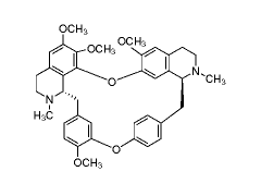 粉防己碱为双苄基异喹啉类生物碱。对心脏有负性肌力、负性频率和负性传导作用,其降压时无反射性心率增快,并有肌松、解热、镇痛和抗炎作用。