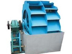 工作时,电机通过三角带、减速机、齿轮减速后带动叶轮缓慢转动,砂石有给料槽进入洗槽中,在叶轮的带动下翻滚,并互相研磨,除去覆盖砂石表面的杂质,同时破坏包覆砂粒的水汽层,以利于脱水;同时加水,形成强大水流,及时将杂质及比重小的异物带走,并从溢出口洗槽排出,完成清洗作用。干净的砂石由叶片带走,最后砂石从旋转的叶轮倒入出料槽,完成砂石的清洗作用。