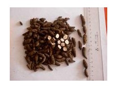 性状 根茎纺锤形,长1.5~3.5cm,直授0.5~lcm。表面紫棕色或焦黑色,具纵皱纹,有6~10个略隆起的环节,节处有棕色毛须及残留根痕;去净毛须者较光滑,环节不明显。质硬,经蒸煮者断面黄棕色,角质样;生晒者断面显粉性,内皮层环纹明显,中柱有点状维管束散在。气香,味微苦。