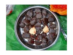 木鳖子 Semen Momordicae (英) Cochinchina Momordica Seed 别名 漏苓子、藤桐子、木鳖。 来源 为葫芦科植物木鳖子Momordica cochinchinensis (Lour.) Spreng . 的种子。 植物形态 多年生草质藤本。茎有棱,无毛,卷须单一,与叶对生。叶互生,圆心形,直径7~14cm,3~5中裂或深裂,偶有7裂,裂片卵形或长卵形;叶柄顶端或叶片基部有2~5腺体。花单性同株;雄花梗细长,每花具1大苞片,花萼黑褐色,有黄白色斑点,花冠浅黄白色;雌花梗短,苞片较小。瓠果长椭圆形,长9~15cm,熟时红色,表面有软质刺突。种子暗黑色。花期6~8月,果期8~11月。 生于山坡林下或灌丛中。主产湖北、广西、四川。 采制 冬季采收成熟果实,剖开,晒至半干,除去果肉,取出种子,干燥。 性状 种子扁平圆板状,中间稍隆起或微凹下,直径2~4cm,厚约0.5cm/表面灰棕色至黑褐色,有网状花纹,在边缘较大的一个齿状突起上有浅黄色种脐。外种皮质硬而脆,内种皮灰绿色,绒毛样。子叶2,黄白色,富油性。有特殊的油腻气,味苦。 化学成分 含木鳖子酸(momordic acid)、丝石竹皂甙元(gypsogenin)、齐墩果酸(oleanolic acid)、α-桐酸(α-elaeostearic acid)、气基酸、甾醇。 性味 性温,味苦,微甘;有毒。 功能主治 散结消肿,攻毒疗疮。用于疮疡肿毒、乳痈、瘰疬、痔漏、干癣、秃疮。