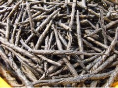 苦丁茶 Folium llicis Latifoliae (英)Broadleaf Holly Leaf 别名 菠萝树、大叶茶、苦灯茶。 来源 为冬青科植物大叶冬青llex latifolia Thunb.的叶。 植物形态 常绿乔木,高达15m。树皮赭黑色或灰黑色,粗糙,有浅裂,枝条粗大,平滑,新条有棱角。叶革质而厚,螺旋状互生,长椭圆形或卵状长椭圆形,先端锐尖,或稍圆,基部钝,边缘有疏齿,上面光泽,下面主脉突起。聚伞花序,多数密集在上部叶腋;雄花序1~3朵,雌花序则仅有1花;苞片卵形,多数;萼4裂,裂片卵形,有缘毛,黄绿色;花瓣4,椭圆形,基部愈合,长为花萼的3倍;雄花有雄蕊4,较花瓣长,花丝直形,花药卵形,中央有退化了房,两性共强雄蕊与花瓣等长,子房球状卵形。核果球形,成熟后红色,有残留花柱;分核4颗,有3棱。花期4~5月,果期10月。 生于山坡、竹林、灌木丛中。分布于长江下游各省及福建。 采制 全年可采收,除去杂质,干燥。 性状 叶呈卵状长圆形,革质,不皱缩,有的纵向微卷曲,上面黄绿色或灰绿色,有光泽,下面黄绿色。味微苦。 化学成分 含熊果酸(ursolic acid)、β-香树脂醇(β-amyrin)、羽扇醇(lupeol)、蒲公英萜醇(taraxerol)等。 性味 性大寒,味苦、甘。 功能主治 散风热,清头目,除烦渴。用于头痛、齿痛、目赤、热病烦渴、痢疾。