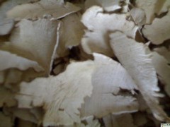 性状 根茎略呈扁圆柱形或不规则条块,有节状隆起,具短分枝,长5~22cm,直径2~5cm。表面黄棕色,微有光泽,凹凸不平,有残留坚硬的须根,分枝顶端有圆形芽痕,并有残留的鳞叶。质坚硬,断面类白色或淡黄棕色,粉性,有维管束小点;常切成厚1~5mm的薄片。味微甘、涩。