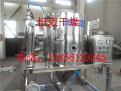 空气通过加热器转化为热空气,进入装置在干燥室顶部的热风分配器,然后均匀的进入干燥室,并呈螺旋状转动,同时将料液送至装置在干燥室顶部的离心雾化器,使料液雾化成极小的雾化液滴,料液和热空气并流接触,水份迅速蒸发,在极短的时间内干燥为成品。成品经干燥塔底部和旋风分离器排出,废气由风机抽出排空。