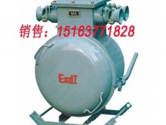 2、馈电开关的隔爆外壳采用Q235-A钢板焊接,圆筒形,具有凸出的底和盖,壳盖与壳身采用转盖止口结构,外壳的右边有断路器的操作手柄,用以分断和闭合断路器,盖与操作手柄之间设有可靠的机械连锁装置,该装置保证当断路器闭合时不能打开盖;盖子打开后,以正常方式不能操作手柄使断路器闭合。外壳上部有一接线箱作为引进和引出电缆用,引入装置以压紧螺母或压紧法兰盘使橡胶密封圈压紧电缆以达到隔爆要求。 |