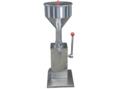 该灌装机容量为50g,使用时旋转容量调节钮,观看刻度表。指针对准你所需的容量,然后扳动手柄试灌。