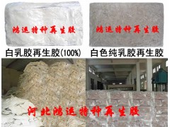 白色天然乳胶再生胶:乳胶再生胶(100%)以马来西亚进口橡胶树的废胶杯,胶丝以及乳胶制品厂凝结的废胶料等为加工原料,并加入部分落地胶,在生产过程中经过破碎、脱硫、消毒、烘干、过滤、挤出等工艺制作完成,在橡胶制品中可单独使用乳胶再生胶生产浅色汽车轮胎、天然内胎、浅色输送带、彩色运动鞋底、彩色电缆、彩色橡胶地板、胶管、球胆、胶带等各种浅白色制品,挤出、模压橡胶制品均可使用,在保证产品质量的同时大大的降低产品的原料成本,具有易配色、无杂质、环保无味道、手感弹性好、扯断伸长率高、开炼工艺简单节省工电费等优点,鸿运特种再生胶有限公司免费提供使用乳胶再生胶技术支持。ZXP◆㊣中国再生橡胶网2010年重点推荐产品㊣◆