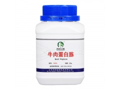 牛肉蛋白胨采用新鲜的牛肉为原料,经热处理、过滤、浓缩、干燥制成牛肉原粉,再将牛肉原粉经过水解、固体分离、冷藏过滤、浓缩干燥等工序即可获得。牛肉蛋白胨颜色浅,呈白色或浅黄色粉末状,有肉香味,易溶于水,水溶液呈淡黄色,水溶液澄清度高,细菌生长灵敏度好。本牛肉蛋白胨采用最新工艺精致而成,在培养基当中它起的主要作用是补充蛋白胨以及其它氮源的营养不足。为微生物提供C源、N源、生长因子等营养物质。
