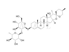 英文别名:(3β,25R)-17-Hydroxyspirost-5-en-3-yl 2-O-(6-deoxy-α-L-mannopyranosyl)-β-D-glucopyranoside; 17-Hydroxyparis V;Polyphyllin VI; Saponin Tb; Paris VI; Paris saponin VI; Pennogenin 3-O-α-L-rhamnopyranosyl-(1→2)-β-D-glucopyranoside; Polygonatoside B3