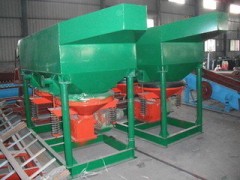 金矿选矿工艺流程如下:开采的矿石先由鄂式破碎机进行初步破碎,在破碎至合理细度后经由提升机、给矿机均匀送入球磨机,由球磨机对矿石进行粉碎、研磨。经过球磨机研磨的矿石细料进入下一道工序分级。螺旋分级机借助固体颗粒的比重不同而在液体中沉淀的速度不同的原理,对矿石混合物进行洗净、分级。分级之后经过搅拌桶进入浮选机,还可以用浸出吸附法。