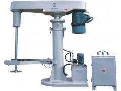 特点:搅拌、分散时空气的吸留量极少,固--夜混合分散与调匀的效果极佳,用在高速搅拌分散,可使物料迅速溶解,颗粒变小。 特点:由机架、轴承座、分散轴、分散盘、油缸、液压站和控制箱等组成。机架升降平稳可靠并可回转360°,能一机多缸使用。