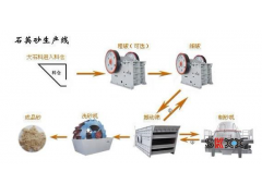 1、干法高纯石英砂生产线:主要设备有破碎机、石英石制砂机、振动筛等。其工艺流程为石英石矿料经过破碎机加工成较小石料,石料再经过石英石制砂机加工砂粒,然后经过振动筛筛分,在筛分过程中利用磁铁棒和排磁铁除铁;