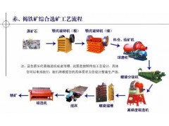 开采的矿石先由颚式破碎机进行初步破碎,在破碎至合理细度后经由提升机、给矿机均匀送入球磨机,由球磨机对矿石进行粉碎、研磨。经过球磨机研磨的矿石细料进入下一道工序:分级。螺旋分级机借助固体颗粒的比重不同而在液体中沉淀的速度不同的原理,对矿石混合物进行洗净和分级。经过洗净和分级的矿物混合料在经过磁选机时,由于各种矿物的比磁化系数不同,经由磁力和机械力将混合料中的磁性物质分离开来。