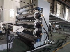 铭嘉达生产遇火膨胀密封片挤出机,三元乙丙橡胶挤出机(图组)一种防火膨胀密封条,属于门、窗密封技术领域,具体涉及防火门或防盗门的密封条;是在阻燃膨胀层的上面和阻燃膨胀层的两个侧面覆盖有阻燃装饰层;所述的阻燃装饰层的上扁面连接有一与阻燃装饰层相同材质的弧状空腔结构。上述结构的优点是可以利用共挤出工艺生产出连续长度的防火密封条,不仅提高了生产效率,同时也提高了产品的质量。本实用新型具有装饰性能好,使用时装饰层不出现翘边现象,适于生产连续长度的积极效果。工艺:密炼,自动提升机,锥双喂料机,单螺杆挤出机,自动换网,片材挤出模具,三辊压光,托架冷却,在线切割,输送带。全部自动化,流水作业。物料密炼后能强制进入单螺杆,螺杆全称分散,无过分摩擦热。单螺杆造粒机分散效果优异,主机电流小,节能环保。