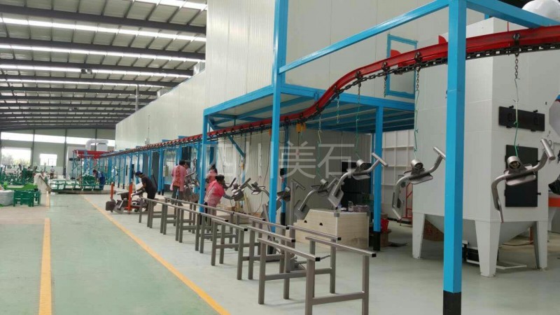 喷塑流水线主要配套设备:悬挂链输送机,不锈钢喷淋清洗剂,脱水炉,喷塑房,自动喷涂机,升降机,隔离房,加热炉,固化烘干炉,废气处理设备等。