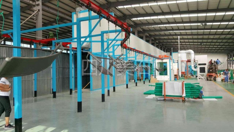 喷塑线:上喷淋前处理烘干脱水—喷塑—烘干固化20min、180℃-220℃)—冷却—下件