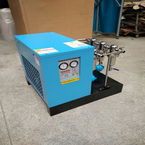 ::≤0.02 MPa 冷却水进水温度::≤32℃(水冷) 冷却水进水压力:0.15~0.4 MPa(水冷) 技术指标:1、额定进气温度::≤45℃ 2、额定工作压力:0.7Mpa (0.4 - 1.0Mpa允许使用,将逐渐降低除湿能力。所以除水过滤器的设置非常必要,其精度一般在3~25μm间选激光切割机用冷冻式干燥机。 推荐选用本公司JF9级过滤器。(2) 油雾过滤器。如果进入冷干机的空气中含有大量的油膜,会降低冷干机中换热器的换热效果.一个典型的 冷冻式冷干机的系统在冷冻式冷干机进气口前设置了二台过滤器,在排气口后设置了一台过滤器,制冷剂:R-22或根据客户要求可采用R134a,: 4、压力露点:-40℃(0.7Mpa)5、再生方式:WXF型:无热再生;VXF型:微热再生 6、控制方式:单独控制或联机控制