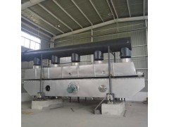 物料自进料进口进入机内,在振动力作用下,物料沿水平面流化床抛掷,向前连续运动,热风向上穿过流化床同湿物料换热后,湿空气经旋风分离器除尘后由排风1:3排出.干燥物料由排料进口排出。