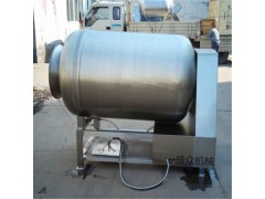 小型真空滚揉机(真空腌制机厂家Tel:155*5361-8501)在肉制品中采用真空滚揉的优点在于:通过抽真空,能排出肉品原料及其渗出物间的空气,这样在以后的热加工中不致产生热膨胀现象破坏产品的结构。真空滚揉还有助于改善腌肉制品的外观颜色。肉制品腌制过程中的氧化反应对制品的外观颜色不利。采用真空滚揉在长时间连续生产过程中不会发生氧化发应。真空可确保盐水快速向肉块中渗透的同时,也有助于清除肉块中的气孔,并且真空使肉块膨胀从而提高了嫩度。但是真空度也不宜太高,否则在高真空度下肉块中的水分很容易被抽出来,影响了肉馅的质量。一般真空度在-0.07~-0.08 Mpa即可。