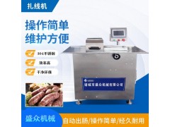 全自动肠类打结机,采用服电机同步运行控制,框架式结构,高级喷砂处理技术,微电脑控集成控制,运行平稳,肠类打结长度,自动拉料,并能计算打结数量。是肠类打结好帮手。减轻了工人的工作强度,操作员只需半灌装后的肠放入机器的入料,机器就会自动完成肠类的进料结扎工序。大大提高生产肠类的效率,使用方便,实用美观,是腊肠、烤肠亲亲肠扎线的理想设备。体积小、动作反应快、过载能力大,波动小,运行平稳,效率高。