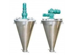 双螺旋锥形混合机是由减速器、缸盖、缸体、传动部分、螺杆和排出阀组成。