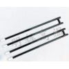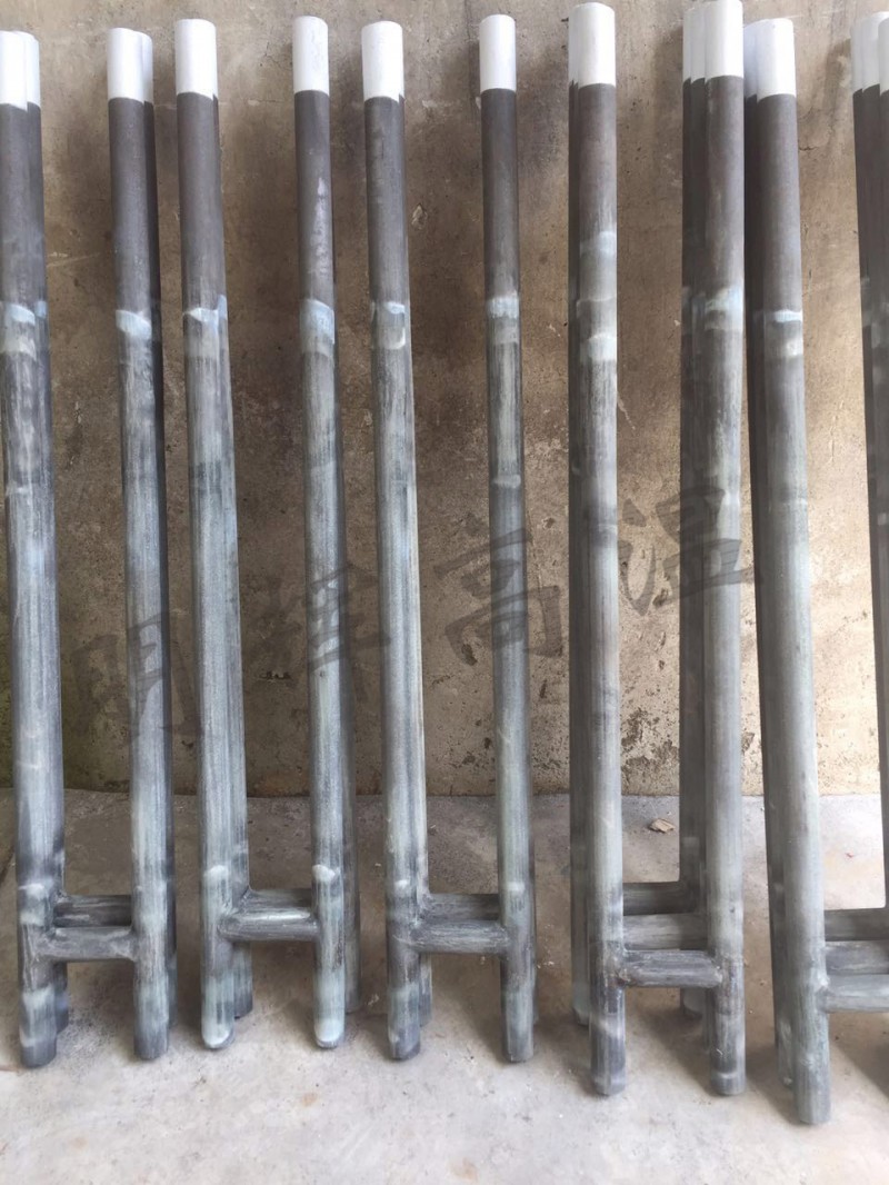 H型硅碳棒主要用于玻璃料道加热,都是U型部分多出一节,一种是墙上打洞穿进去,硅碳棒自然下垂,一种是两个脚都支撑在上面玻璃液在流过降温段及均化段的过程中,应使玻璃液均匀降温至适合成型的温度,如果不采取任何措施,料道两侧散热多,中间部位散热少,会导致玻璃中间部位与两侧温度梯度较大,即玻璃液同一断面的温度不均匀,使玻璃液粘度不一致,直接影响成型的质量。为了使料液温度一致,一方面在降温段预留通风孔,通过调节通风孔的开度,来调节供料道降温段中间部位散热的多少,使温度均匀;另一方面,采用专用硅碳棒辅助加热来实现。硅碳棒一般都均匀布置在供料道内玻璃液的上方,与玻璃液保持一定距离,向下辐射加热。为了保证供料道两侧加热而中间部位不加热,一般选用玻璃料道行业专用硅碳棒。