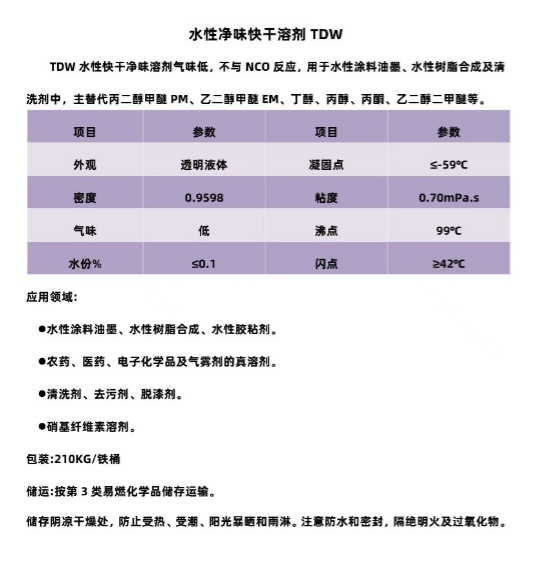 耀之辉水性净味快干溶剂TDW,含量大于99%,现货