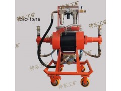 2ZBQS15/10矿用气动注浆泵压力大、排量大、功率大,效率高,便于移动;既可以注单组份浆液,也可以注双组份浆液,可以注化学浆液、水泥浆、充当乳化液泵或高压水泵、液压泵,混合比可以调整,混浆均匀;在易燃、易爆、温度、湿度变化较大的场所,均可以安全使用。