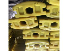 聚氨脂碰头配置的矿车按结构和卸载方式分为:固定式、翻斗式、侧卸式、梭式、底卸式等。橡胶矿车碰头与车箱、车架、缓冲器、联接器和行走机构组成一台矿车。橡胶矿车碰头安装在车架内,能承受牵引力、制动力、矿车之间的碰撞力和钢轨冲击力。