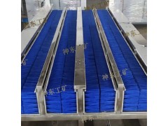 洗靴系统 | 3组15只立刷辊(单通道) 5组25只立刷辊(双通道) 5组横刷辊(单、双通道) | 框架支撑部件 | 整体水箱由SUS304不锈钢拉丝板材制做,支架及部件方型不锈钢管及板材,刷丝直径为0.25mm |
