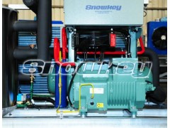 式片冰机组连续性的运行,无能量浪费的运转。采用特殊合金材料和专利加工技术,确保高效热传导性能,SNOWKEY制冰机生产的片冰的冷却表面为1750m2以上/吨。与其它品牌的机组对比,使用同样压缩机的情况下,SNOWKEY片冰机能生产出更多的冰。