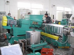 密炼机的团状料经提升机,锥双喂料机,挤出机,切粒,冷却,筛分,终端料仓全部自动化,流水作业。物料密炼后能强制进入单螺杆,螺杆全称分散,无过分摩擦热。分散效果优异,主机电流小,节能环保。此机台用于PVC,低烟无卤电缆料,内外屏蔽电缆料,氯化聚乙烯,功能母粒,色母粒,热收缩料,PP+炭黑低烟无卤系列等塑胶原料的生产,包括主机,锥双强制入料,模面热切等系统将密炼机撹好的原料经锥双挤入造粒机内,后经单螺杆挤出后切成粒子,此机组操作非常简单。