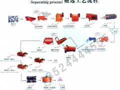 选矿设备价格,开采的矿石先由颚式破碎机进行初步破碎,在破碎至合理细度后经由提升机、给矿机均匀送入球磨机,由球磨机对矿石进行粉碎、研磨。经过球磨机研磨的矿石细料进入下一道工序:分级。螺旋分级机借助固体颗粒的比重不同而在液体中沉淀的速度不同的原理,对矿石混合物进行洗净、分级。经过洗净和分级的矿物混合料在经过磁选机时,由于各种矿物的比磁化系数不同,经由磁力和机械力将混合料中的磁性物质分离开来。经过磁选机初步分离后的矿物颗粒在被送入浮选机,根据不同的矿物特性加入不同的药物,使得所要的矿物质与其他物质分离开。在所要的矿物质被分离出来后,因其含有大量水分,须经浓缩机的初步浓缩,再经烘干机烘干,即可得到干燥的矿物质。