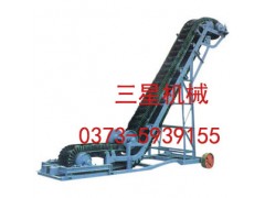 DJ-Ⅱ型大倾角皮带输送机其结构是在平形橡胶运输带两侧粘上可自由伸缩的橡胶波形立式“裙边”,在裙边之间又粘有一定强度和弹性的横隔板组成匣形斗,使物料在斗中进行连续输送。挡边带式输送机可广泛用于煤炭、粮食、建材、化工、水电和冶金等部门,在环境温度为-19℃~+40℃范围内,输送堆积比重为0.5-2.5t/m3的各种散状物料。对于输送有特殊要求的物料,如高温、具有酸、碱性、油类物质或有机溶剂等成分的物料,需采用特殊的挡边输送带。