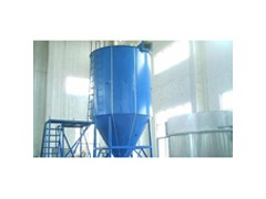 空气经过滤和加热,进入干燥器顶部空气分配器,热空气呈螺旋状均匀地进入干燥室。料液经塔体顶部的高速离心雾化器,(旋转)喷雾成极细微的雾状液珠,与热空气并流接触在极短的时间内可干燥为成品。成品连续地由LPG系列高速离心喷雾干燥机干燥塔底部和旋风分离器中输出,废气由风机排空。