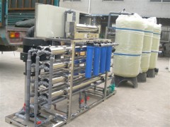 原水→原水增压泵→石英砂过滤器→活性碳过滤器→复床系统→紫外线杀菌器→微孔过滤器→纯水箱→用水点(传统工艺电导率≤10μS/CM)