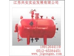 压力式泡沫比例混合装置主要由带胶囊的泡沫液压力储罐与利用文丘里原理制成的PHY型压力式比例混合器组成,当系统管网中的水流经比例混合器减压孔板时,在孔板的前后会形成压差。压高处的一部分水(3%或6%)通过泡沫罐的进水管进入罐内,挤压胶囊,将胶囊中的泡沫液通过泡沫罐的出液管挤压至比例混合器低压处与水混合形成泡沫混合液,形成的泡沫混合液输出到泡沫产生设备(中、低、高倍数泡沫产生器,泡沫枪,泡沫炮等)与空气混合产生泡沫灭火。该装置广泛用于油库、化工厂、机库、油田、燃油锅炉、地下车库等场所。