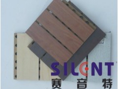 “赛音特”木质装饰吸音板是根据声学原理精致加工而成,由饰面、芯材和吸音薄毡组成。芯材为进口MDF板材,芯材的正面贴有饰面,背面粘贴黑色吸音薄毡。根据客户的要求,饰面有各种实木贴面、进口烤漆面、油漆面和其它饰面,既有木材本身的装潢效果,又有良好的吸音性能。与其它吸音板相比有独到之处,是当今国内外首选使用的装饰吸音板。