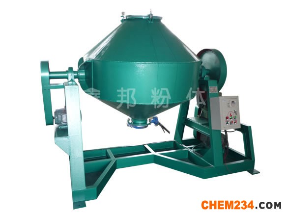 该机同V型混料机的功能相似。将粉末或料状物料加入到双锥容器中,随着容器的不断旋转,物料在容器中进行复杂的撞击运动,达到均匀的混合。 该机对流动性较好的粉体及料粒状进行混合,效果显著。各项技术指标均达到国外同类产品标准。本机节约能源、操作方便、劳动强度低、工作效率较高。 该混料机对较细粉烂容易凝块,对含有一定水份的多种植物均能混合。对微量物和添加物也可达到同样的混合效果。