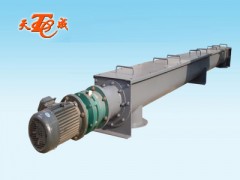 LS型螺旋输送机是利用旋转的螺旋将被输送的物料沿固定的机壳内推移而进行输送工作,头部及尾部轴承移至壳体外,吊轴承采用滑动轴承设有防尘密封装置,轴瓦一般采用粉末冶金,输送水泥采用毛毡轴瓦,吊轴和螺旋轴采用滑块连接。