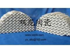 陶瓷波纹填料是一种新型规整填料,它是由许多具有相同几何形状的填料单元体组成。由于陶瓷独特的结构,具有良好的亲水性能,其表面可形成极薄的液膜的湍动及气流的倾斜曲折通道能促进气流但又不阻挡气流使陶瓷填料能与金属填料相匹敌,而其耐腐蚀、耐高温性能金属填料却无法相比。表面结构有良好的湿润性能,能使液体加快流动、使填料滞液量降至最低。从而降低了过热、聚合和结焦的机会