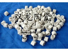 陶瓷拉西环是最早开发的一种散堆填料。形状简单,它是高与直径相等的圆环。大尺寸的拉西环(100mm以上)一般采用整砌方式规则填充,100mm以下的拉西环多采用乱堆方式装填。 陶瓷拉西环具有优异的耐酸耐热性能,能耐除氢氟酸以外的各种无机酸、有机酸及有机溶剂腐蚀,可在各种高温场合使用,应用范围十分广泛,可用于