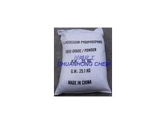物化性质:白色粉末;相对密度2.534;熔点1109oC;溶于水,不溶于乙醇;水溶液呈碱性;25oC时100g水中的溶解度为187g;焦磷酸钾具有其他缩合磷酸盐的所有性质。