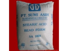 硬脂酸化学名:十八烷酸 又称:十八酸;十八碳烷酸 英文名称:Stearic acid;Octadecanoic acid分子式:C18H36O2;CH3(CH2)16COOH分子量:28448  广泛用于制化妆品、塑料耐寒增塑剂、脱模剂、稳定剂、表面活 剂、橡胶硫化促进剂、防水剂、抛光剂、金属皂、金属矿物浮选剂、软化剂、医药品及其他有机化学品。   另外,还可用作油溶 颜料的溶剂、蜡笔调滑剂、蜡纸打光剂、硬脂酸脂的乳化剂等。 塑料行业   硬脂酸广泛应用于PVC塑料管材、板材、型材、薄膜的制造。是PVC热稳定剂,具有很好的润滑 和较好的光、热稳定作用。在塑料PVC管中,硬脂酸有助于防止加工过程中的"焦化",在PVC薄膜加工中添加是一种有效的热稳定剂,同时可以防御暴置于硫化物中所引起的成品薄膜变色。 橡胶工业   硬脂酸在橡胶的合成和加工过程中起重要作用。硬脂酸是天然胶、合成橡胶和胶乳中广泛应用的硫化活 剂,也可用作增塑剂和软化剂。在生产合成橡胶过程中需加硬脂酸作乳化剂,在制造泡沫橡胶时,硬脂酸可作起泡剂,硬脂酸还可用作橡胶制品的脱模剂。 化妆品工业   硬脂酸用于雪花膏和冷霜这两类护肤品中起乳化作用,从而使其变成稳定洁白的膏体。硬脂酸还是制造杏仁蜜和奶液的主要原料。硬脂酸皂酯类在化妆品工业中用途更为广泛。 工业品的硬脂酸   工业品呈白色或微黄色颗粒或块,为45%硬脂酸与55%软脂酸的混合物,并含有少量油酸,略带脂肪气味。 包装:25Kg塑料编织袋。