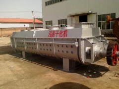 污泥干化机工作原理:污泥干化机是一种传导加热的低转速搅拌型干燥机。在干燥器筒体上设置夹套,空心轴上设置空心桨叶,在其中通入热载体(水蒸汽、导热油), 湿物料在搅拌桨叶的搅动下筒体及桨叶热表面进行充分热交换,以达到干燥的目的。三门峡昊博化工工程有限公司