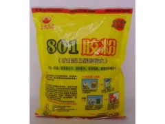 此产品有聚乙烯醇胶水的特性,在生产中添加2.5%即达到的效果,在水性涂料可作为增稠粘剂,能与各种无机粉料(白水泥、灰钙、轻钙、石膏粉)混合使用没有任何不良反应,在施工现场直接按801胶粉与2.5:100的比例常温慢速搅拌下数十分钟内全溶后,可直接与(白水泥、灰钙、轻钙、石膏粉)混合施工使用,在施工方面批烫更轻松、润滑、胶水更慢干。墙面达到聚乙烯醇胶水的强度。