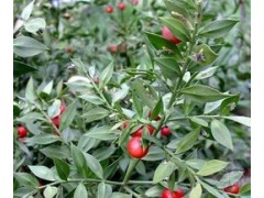 生物学特征】 为百合科常绿草状小灌木,丛生。株高一般为20~40厘米,具横生、肉质的根,茎绿色,具线条状棱线,有分枝。叶变为干膜质的小鳞片,长2~4毫米,在鳞片腋间长出卵形、革质的绿色“叶状枝”,长约1.5厘米,具基出弧形脉,顶端锐尖为刺状。从形态和功能上都代替叶片。花白色,小型,生于叶状枝中脉的中下部,内外两轮各3枚花被片,基部具三角形苞片,小浆果球形,直径约1厘米,熟时红色。